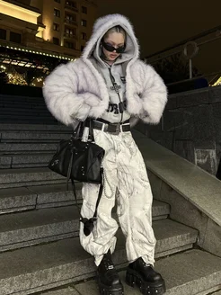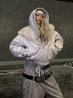 Куртка худи с мехом укороченный дутый