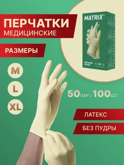 Перчатки медицинские латексные Matrix Extra Latex, L, 50 пр