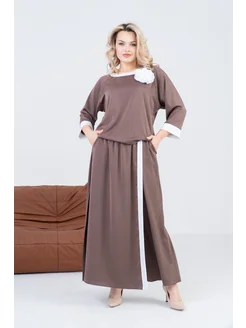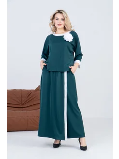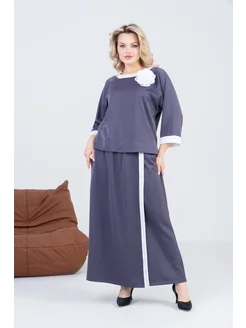 Костюм двойка из атласа праздничный юбка-брюки с блузкой