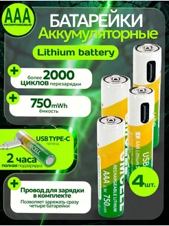 Аккумуляторные батарейки ААА аккумулятор от USB мизинчиковые