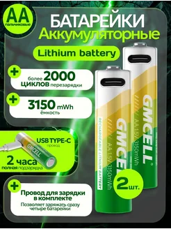 Аккумуляторные батарейки АА аккумулятор от USB Пальчиковые