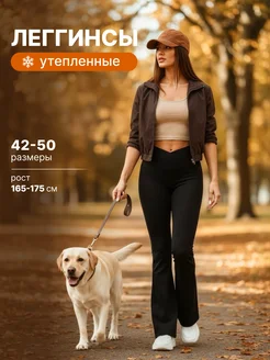 Брюки утепленные леггинсы клеш гладкие на флисе с V поясом
