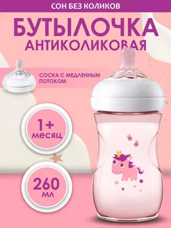 Бутылочка для новорожденных антиколиковая 1+мес 260мл