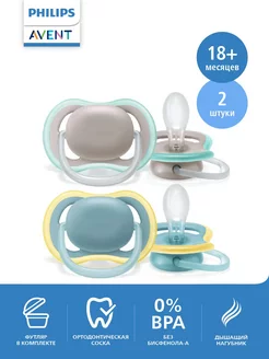 Соска-пустышка Avent с футляром, 18 мес +, 2 шт