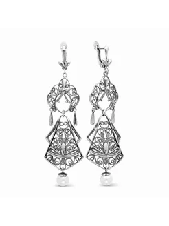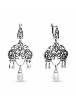 Серьги серебро 925 длинные с жемчугом оксидирование 3368314