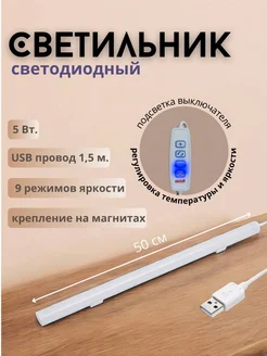 Светильник светодиодный на кухню под шкаф от USB, 50 см