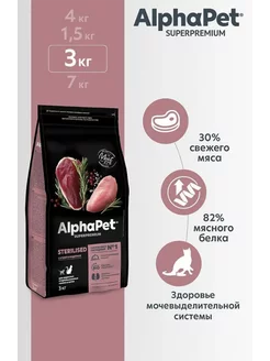 АльфаПет для стерил кошек с уткой и индейкой 3кг
