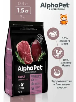 АльфаПет для домашних кошек с говядиной и печенью 1.5кг