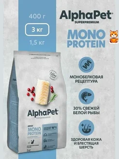 АльфаПет MONOPROTEIN для взрослых кошек с белой рыбой 3кг