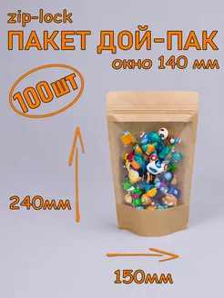 Пакет бумажный Дой-пак 150х240 мм с окном 140 мм, 100 шт