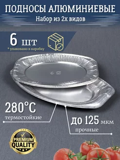 Набор подносов одноразовых 6 шт (2 вида по 3 шт) из фольги
