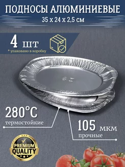 Поднос алюминиевый 4 шт 35х24х2,5см сервировочный из фольги
