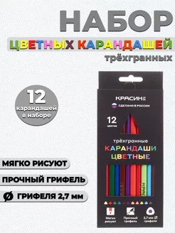 Набор цветных трёхгранных карандашей 12 шт КРАСИН