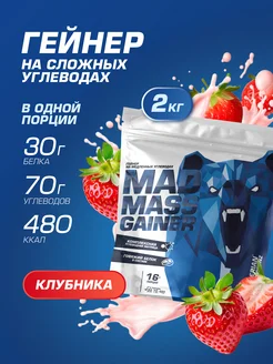 Гейнер для набора массы и веса, клубника, 2 кг