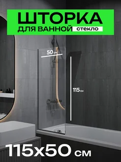 Стеклянная шторка на ванну стационарная 115х50 см