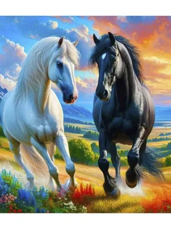Алмазная мозаика 20х30 на подрамнике Лошади