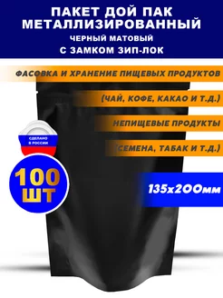 Упаковочные пакеты дой пак черные 135*200 мм, 100 шт