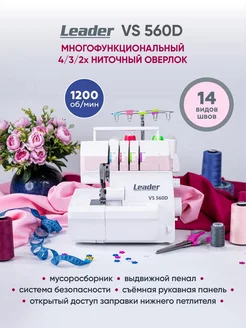 Мощный оверлок Lеader VS560D, 2 3 4 нитки, 1200 ст