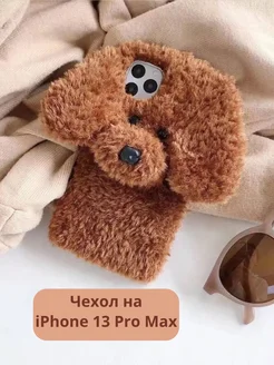 Чехол на iPhone 13 Pro Max плюшевый Мальтипу с ушками