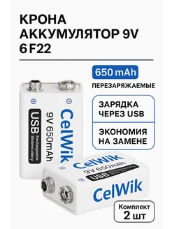 Батарейки аккумуляторные Крона 9В - 2 шт