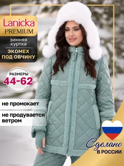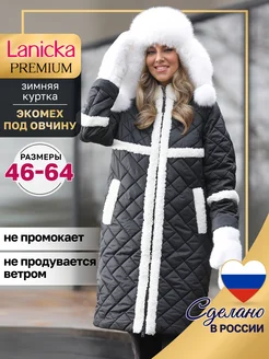 Куртка длинная стеганая плащевая с эко мехом полупальто