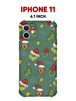 Чехол на iPhone 11 силиконовый с принтом новогодний гринч