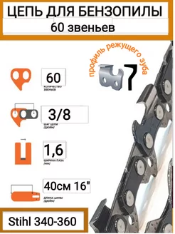 Цепь пильная 60зв. 3 8 1,6мм 16'' для бензопилы штиль