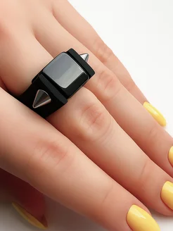 Кольцо черное с агатом