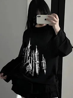 Лонгслив оверсайз с принтом на спине у2к y2k