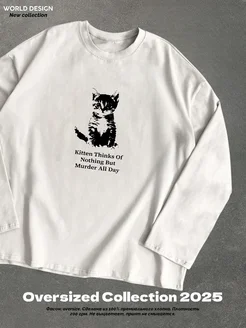 Лонгслив оверсайз с принтом y2k у2к котик кот kitten
