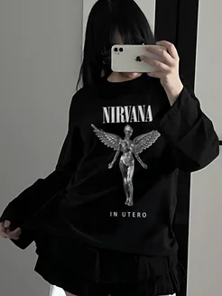 Лонгслив оверсайз с принтом y2k у2к нирвана nirvana