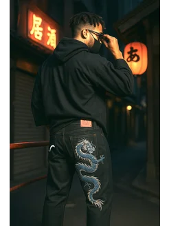 Джинсы с принтом дракон