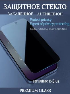 Защитное стекло на iPhone 15 Plus анти-шпион Crystal