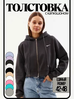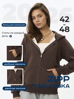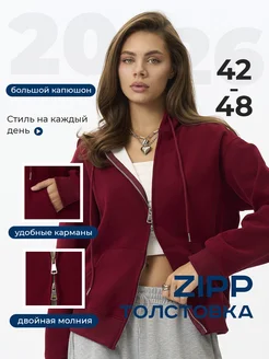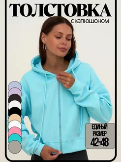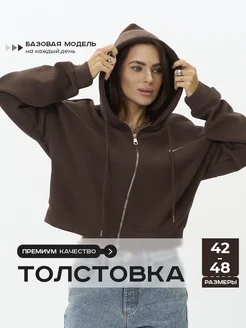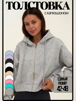 Толстовка укороченная с капюшоном зипка на молнии оверсайз