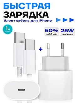 Зарядка Type-C быстрая с блоком 25W на Iphone 15 16 андроид