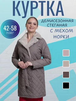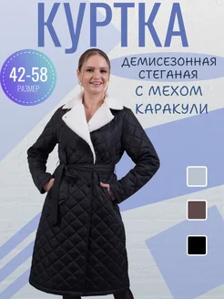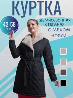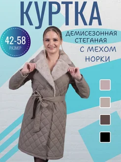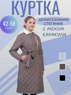 Куртка пальто демисезонное стеганое утепленное с мехом