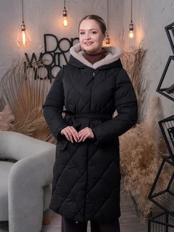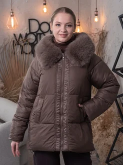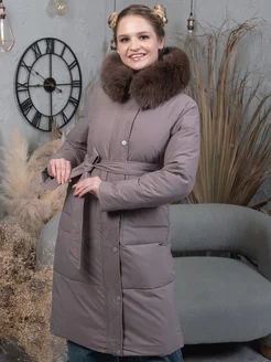 Зимняя куртка удлинённая пальто с капюшоном и мехом