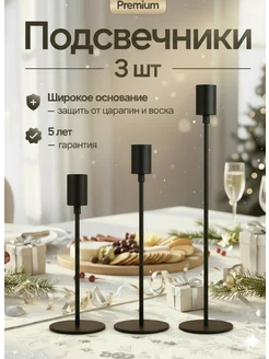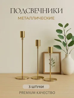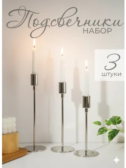 Подсвечники для свечей высоких металлические, набор 3 штуки