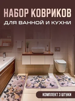 Набор ковриков в ванную и туалет Бабочки40х60+50х80см