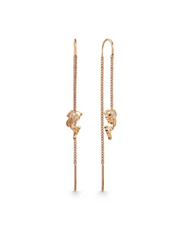 Позолоченные длинные серьги протяжки с камнями Рыбки