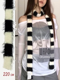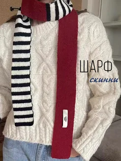 Узкий шарф скинни пушистый вязаный 250 см красный