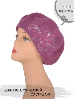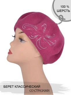 Берет TONAK тёмно-розовый с украшением стразами