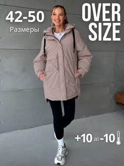 Куртка оверсайз с капюшоном демисезонная удлиненная на зиму