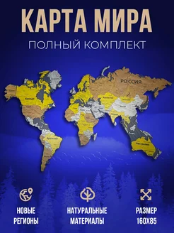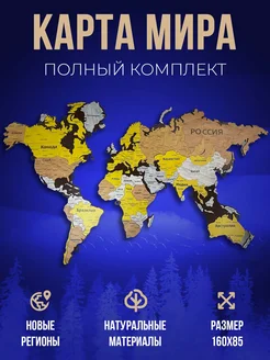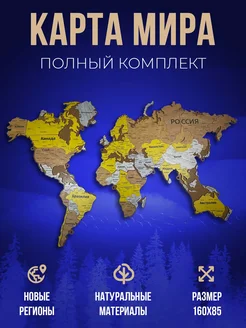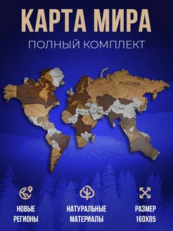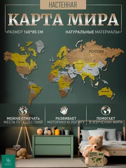 3д карта мира настенная из дерева 160х85 см, пазлы