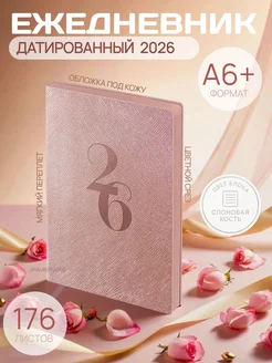 Ежедневник датированный 2026г. А6+ 176л кожзам розовый