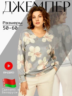 джемпер нарядный c V вырезом кофта теплая больших размеров