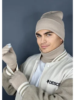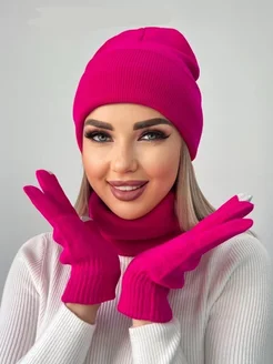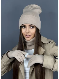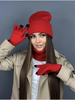 шапка перчатки и снуд комплект осенняя зимняя теплая унисекс