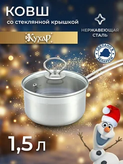 Ковш кухонный 1,5 л из нержавеющей стали с крышкой