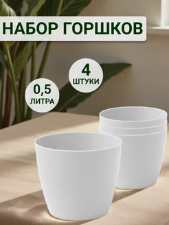 Набор горшков для цветов 0,5 литра белые 4 штуки