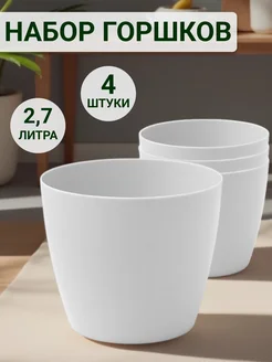 Набор горшков для цветов 2,7 литра белые 4 штуки